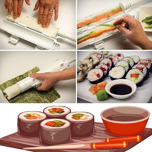 Amazon Com Sushi Roll Making Kit Homemade Sushi Rolls Made Easy By Sushi Roller Kit Best Sushi Maker Machine Set Plastic Sushi Bazooka Kitchen Dining
