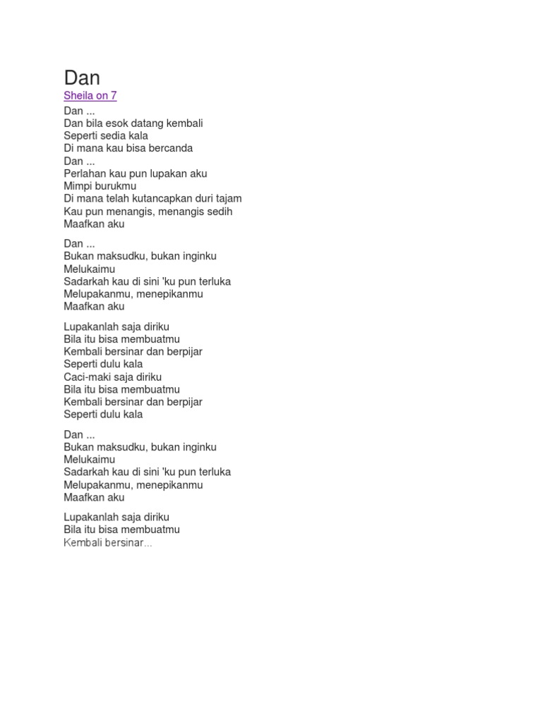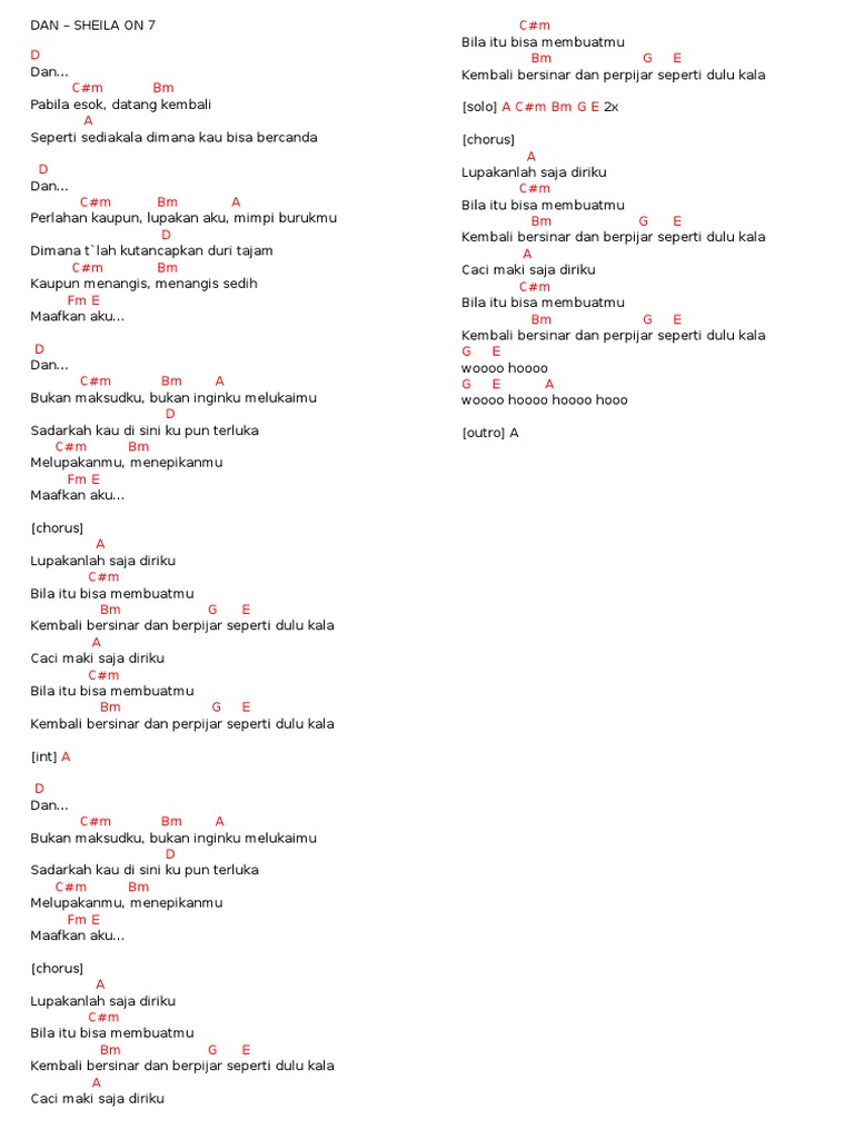 Lirik Dan Kunci Chord Gitar Dan Sheila On 7 Lupakanlah Saja Diriku Tribun Papua