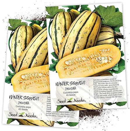 Amazon Com Seed Needs Delicata Winter Squash Cucurbita Pepo Twin Pack Of 45 Seeds Each Non Gmo Vegetable Plants Garden Outdoor