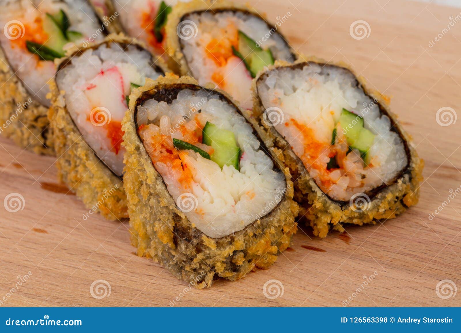 Fancy Crab And Shrimp Tempura Roll With Avocado On A White Plate Stock Photo Picture And Royalty Free Image Image 23518681