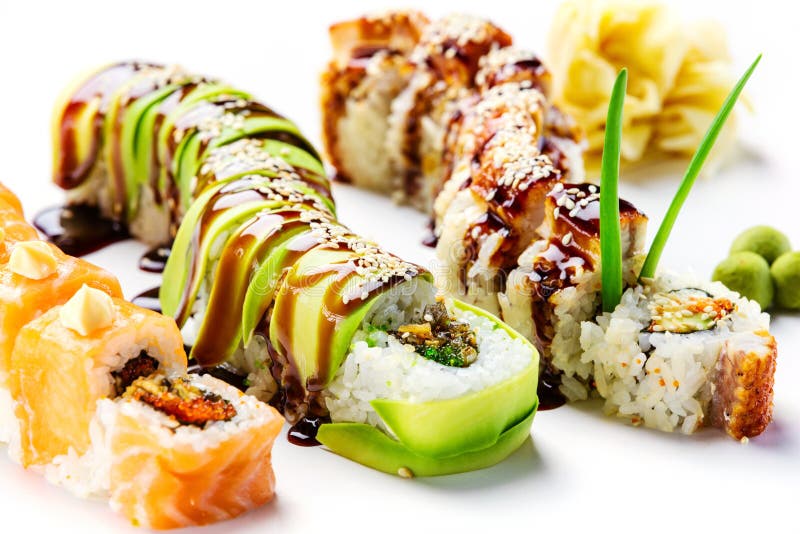 Delicious Dragon Maki Sushi Rolls Served With A Wood Plate Stock Photo Picture And Royalty Free Image Image 40330220