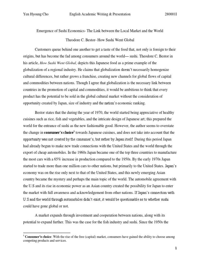 Summary Sushi Global Bestor W Carroll Sushi Mj Docx Article By Bestor U201chow Sushi Went Global U201d What Is Sushi Japanese Food Consisting Of Cooked Course Hero