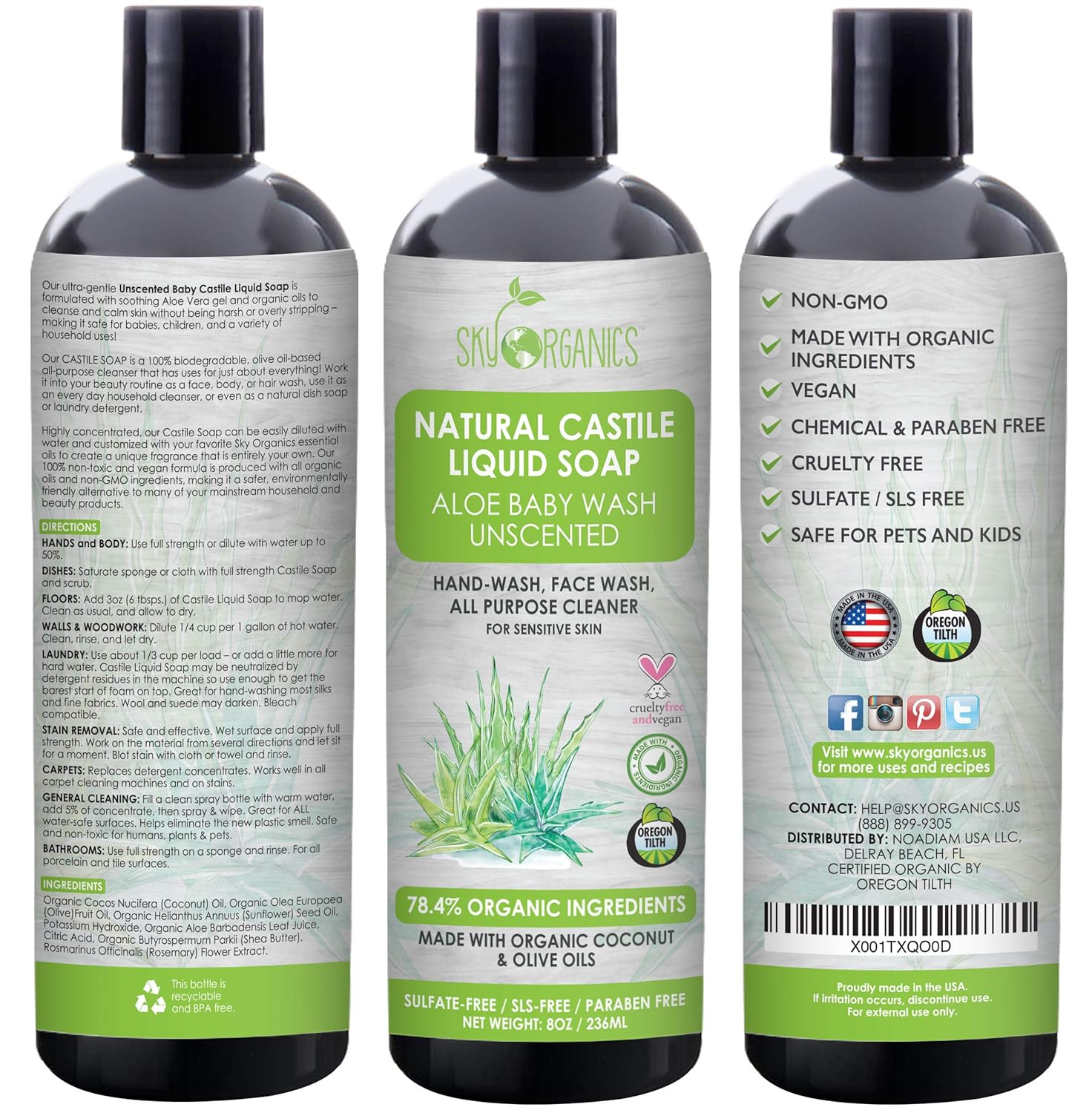 Buy Castile Soap Organic Unscented By Sky Organics 8oz Plant Based Liquid Soap And All Purpose Wash Aloe Vera Baby Wash Vegan Cruelty Free Fragrance Free Natural Castile Soap Savon De Marseille Online