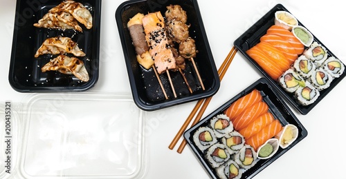Japanese Food Restaurant Delivery Sushi Maki California Gunkan Stock Photo Picture And Royalty Free Image Image 121286630