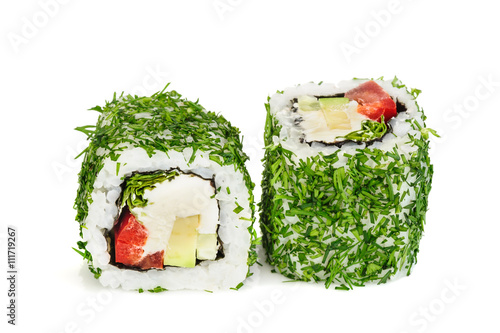Uramaki Maki Sushi Two Rolls Isolated On White Philadelphia Stock Photo Picture And Royalty Free Image Image 60898781