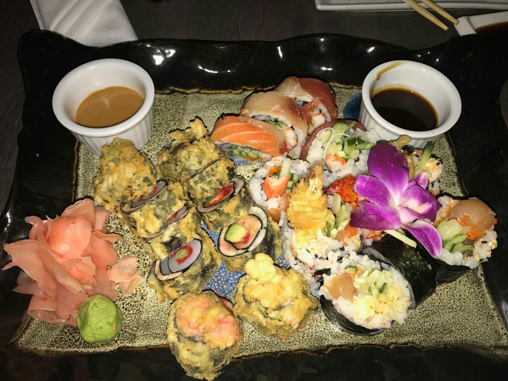 445 inari nigiri bean curd pouch. 545 ebi nigiri shrimp. Inari and avocado nigiri 8pcs crispy veggie uramaki and 12pcs kappa and avocado hosomaki.