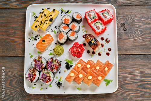 Sushi Board With Various Nigiri Futomaki Hosomaki And Uramaki Stock Photo Picture And Royalty Free Image Image 60948168