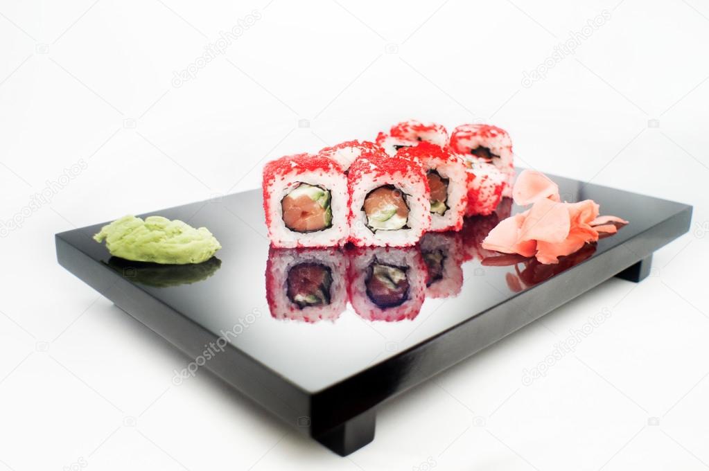 Philadelphia Maki Sushi Made Of Fresh Raw Salmon Cream Cheese And Cucumber With Soy Sauce