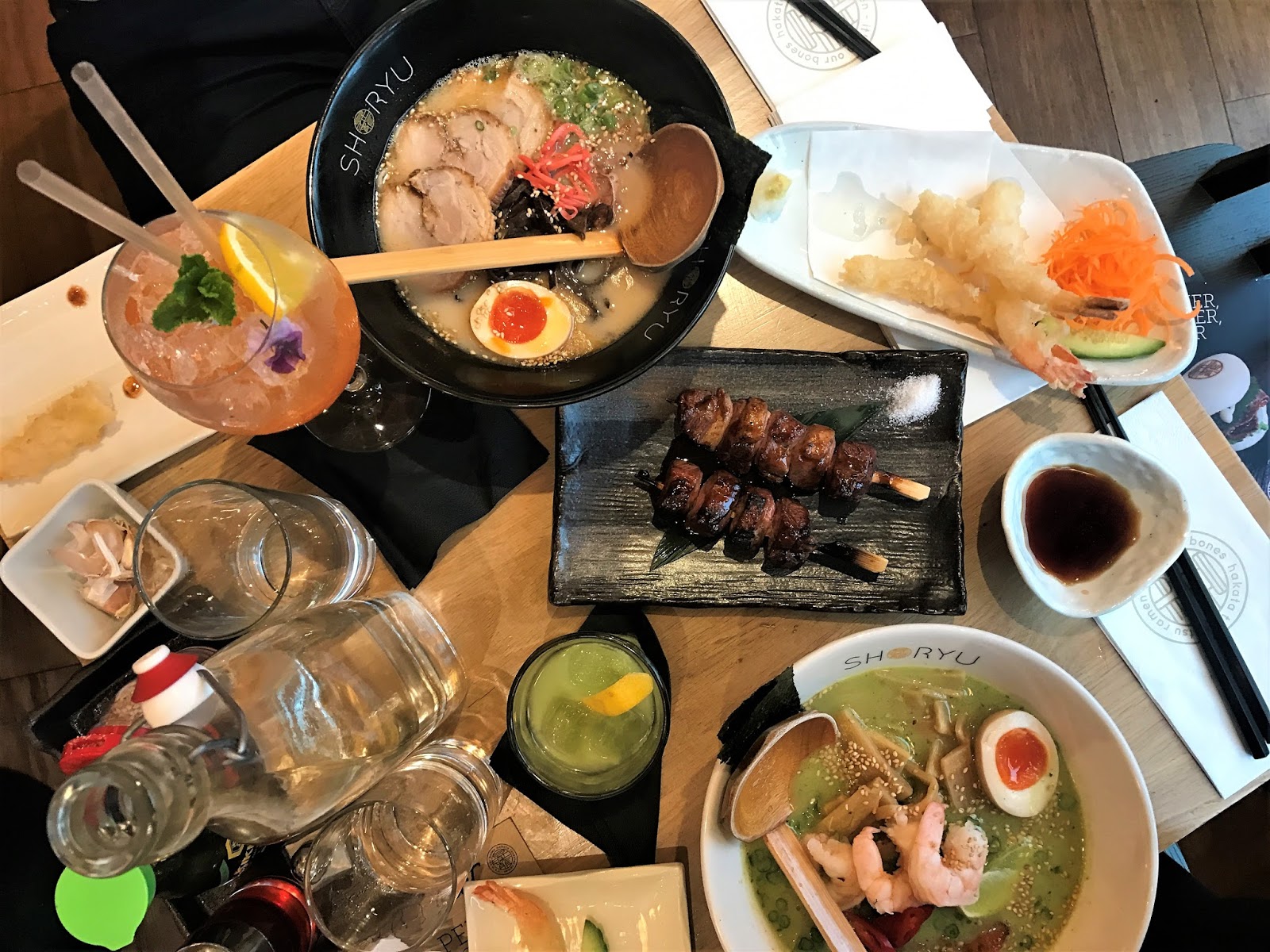 I Ate Karaage Chicken Ramen With Tonkotsu Soup And Miso Base While My Friend Had Soba With Prawn And Vegetables Tempura Food