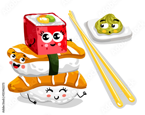 Cartoon Funny Sushi Foods Characters Isolated Vector Illustration Royalty Free Cliparts Vectors And Stock Illustration Image 64169525