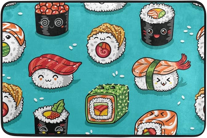 Seamless Pattern With Cute Kawaii Emoji Sushi Vector Cartoon Illustration Stock Vector Image Art Alamy