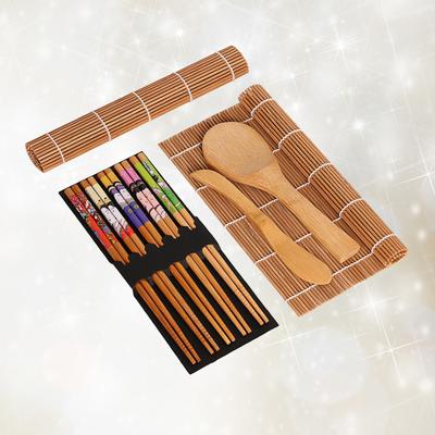 Bamboo Sushi Making Kit 2 Carbonized Bamboo Sushi Rolling Mats 5 Pairs Chopsticks 1 Rice Paddle
