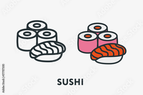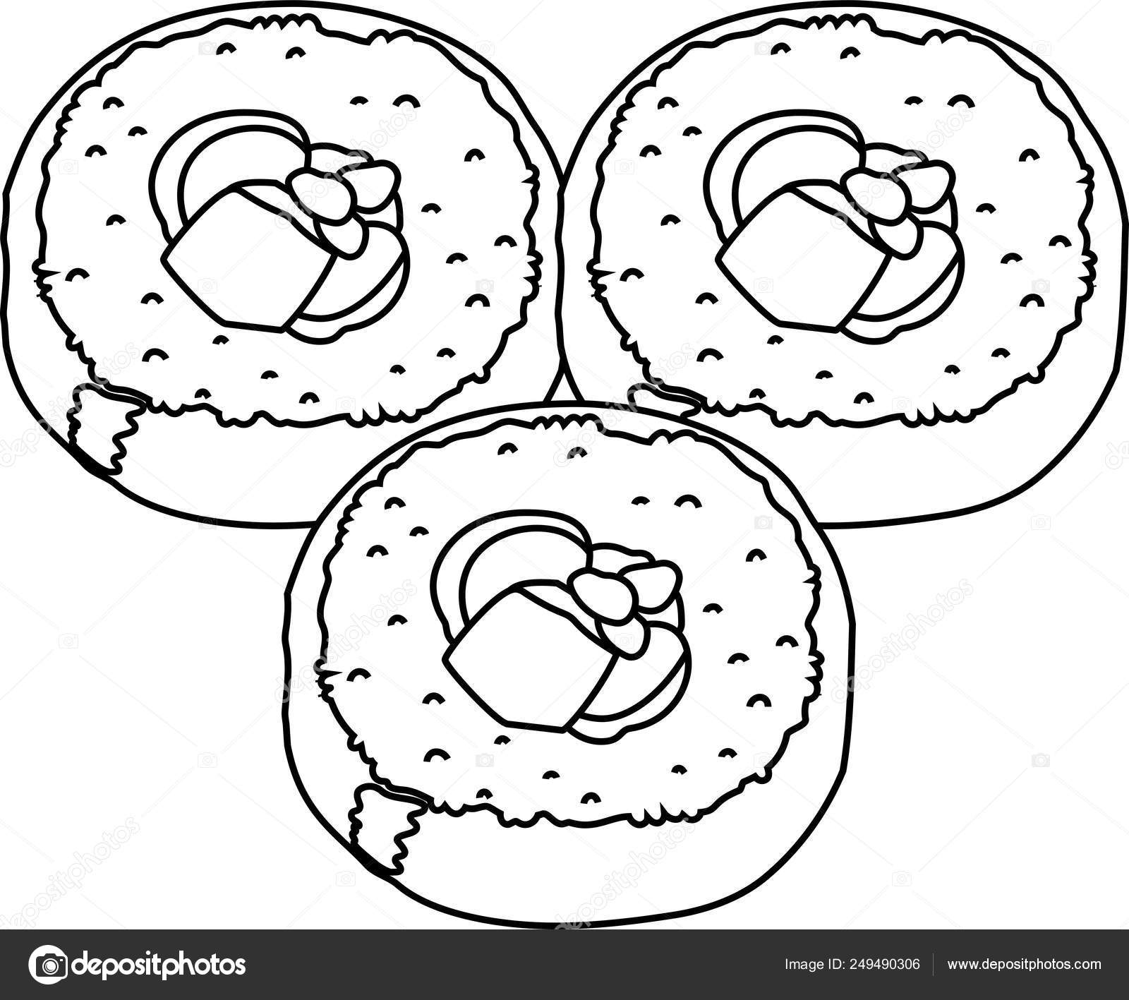 Sushi Food Japanese Fish Rice Plate Outline Vector Illustration Royalty Free Cliparts Vectors And Stock Illustration Image 79336968