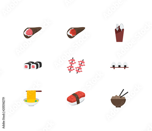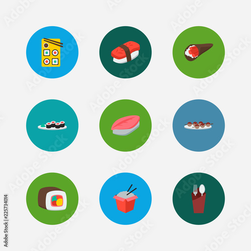 Set Of Japanese Food And Sushi Flat Color Line Icons Philadelphia Roll Ginger Temaki And More Stock Illustration Download Image Now Istock