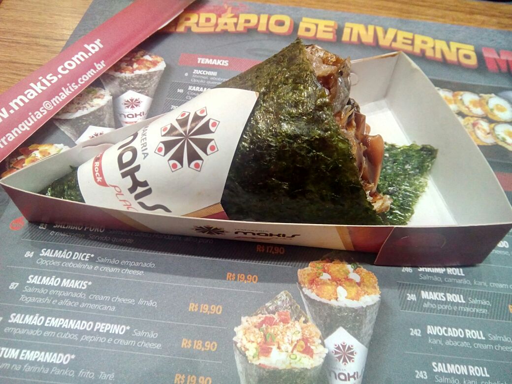 Diario Gastronomico Do Xingourmet Sabores Fracos E Preco Alto Comendo Makisburger Camarao Empanado Combo 1 1 Entrada Sunomono 1 Temaki Salmao Tonkatsu Salmao Skin Cream Cheese Molho Tonkatsu Em Makis Place