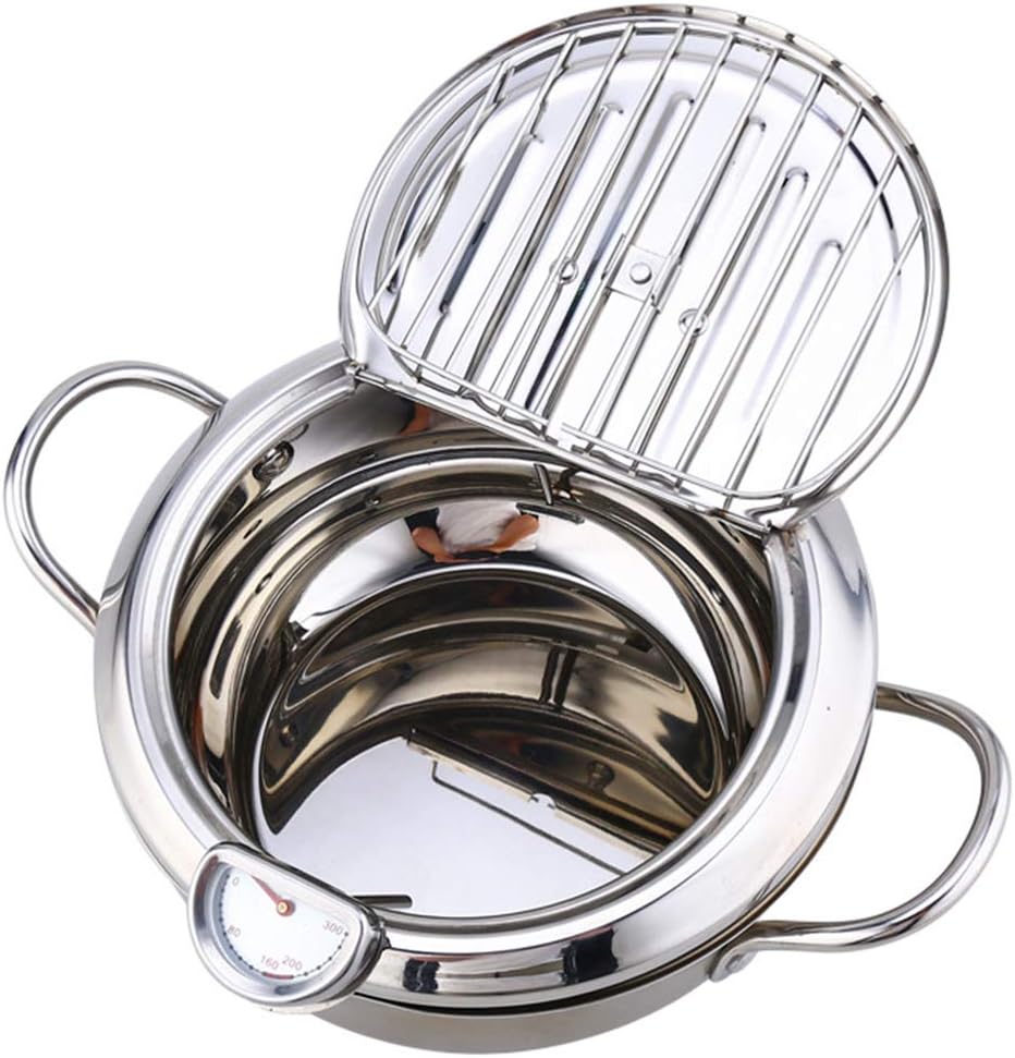 Amazon Com Deep Frying Pan Temperature Control Fryer Tempura Fryer Pot Japanese Style Tempura Deep Fryer With Thermometer Lid And Oil Drip Rack Nonstick Fryer Pot For Kitchen Cooking 20cm 304 Kitchen Dining