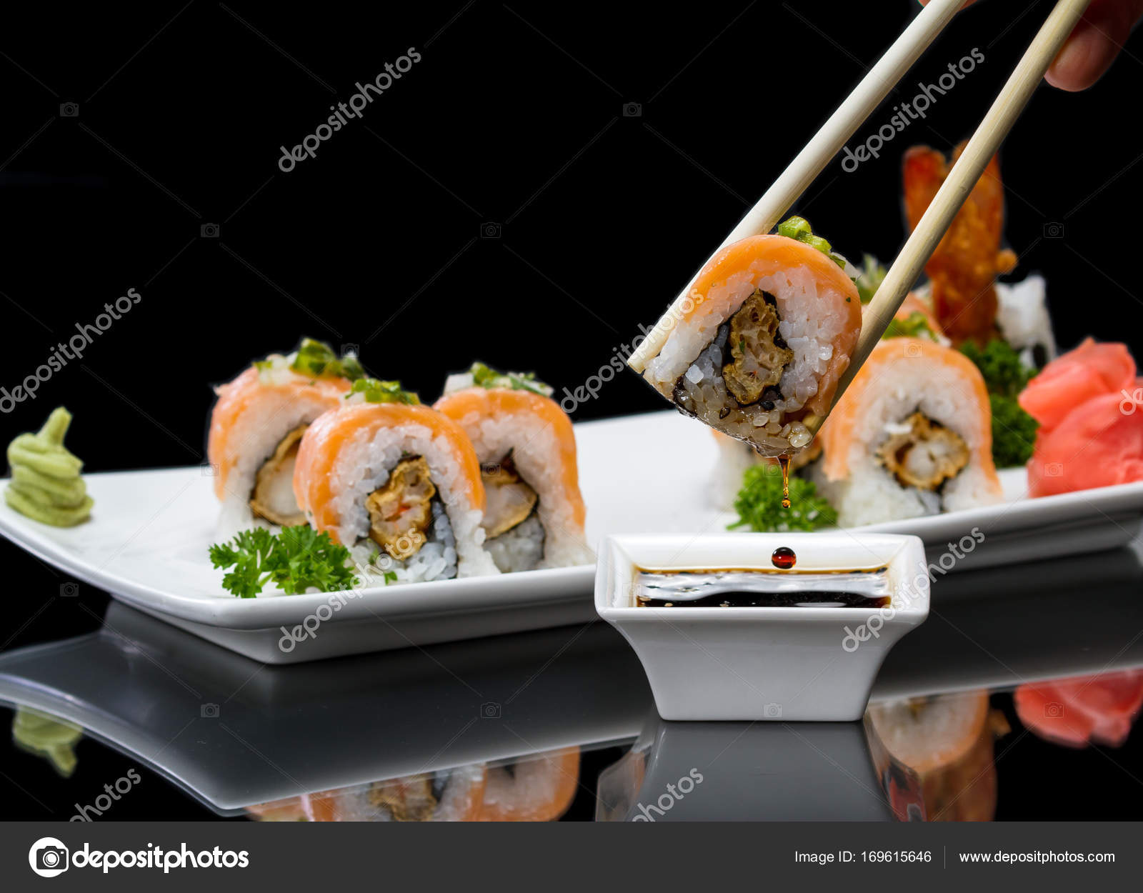 Uramaki Sushi Rolls With Fried Shrimp Avocado And Philadelphia Cheese Stock Photo Image Of Elegant Lunch 55249342