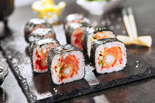 Sushi Dish Japanese Food Uramaki Maki Roll Special Roll Hosomaki Californa Roll Stock Photo Alamy