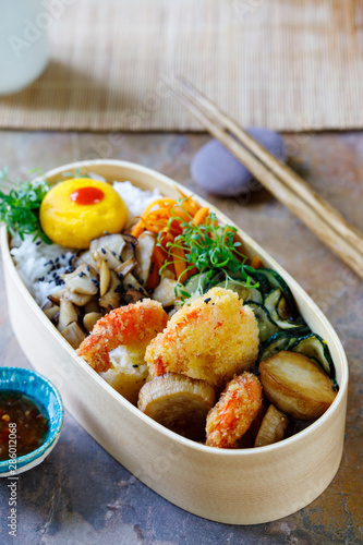 Bento Box With Fish Tempura Vegetables Etc Japan Stock Photo Picture And Royalty Free Image Image 32833698