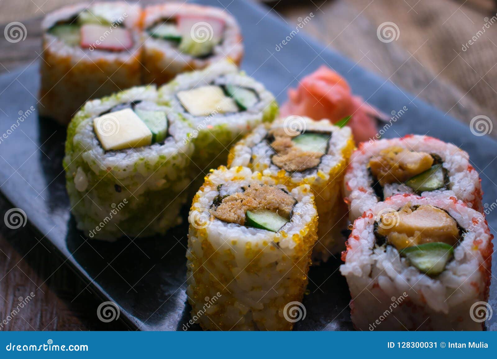 Colorful Yummy Sushi Set Japanese Food Backgrounds Textures Stock Image 1194063865