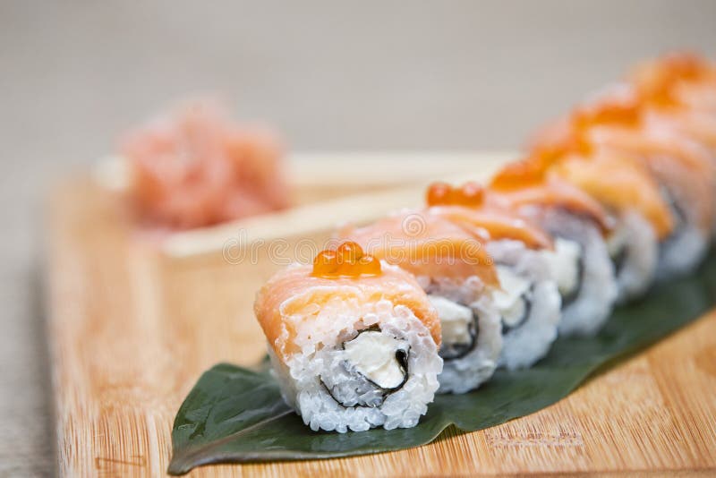 Uramaki Met Zalm Traditionele Japanse Sushi Rolt Stockfoto C Dechevm 274255700